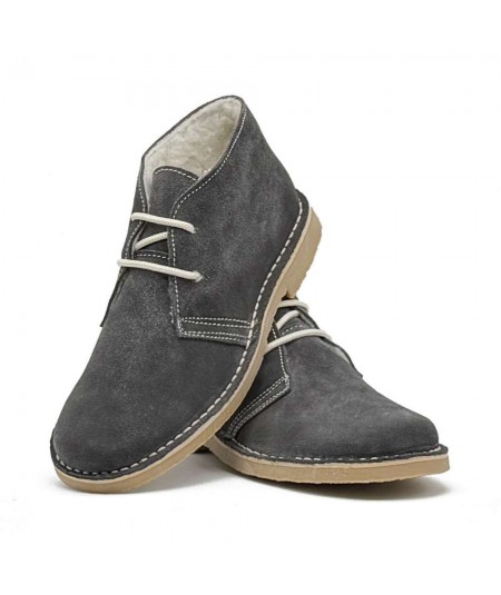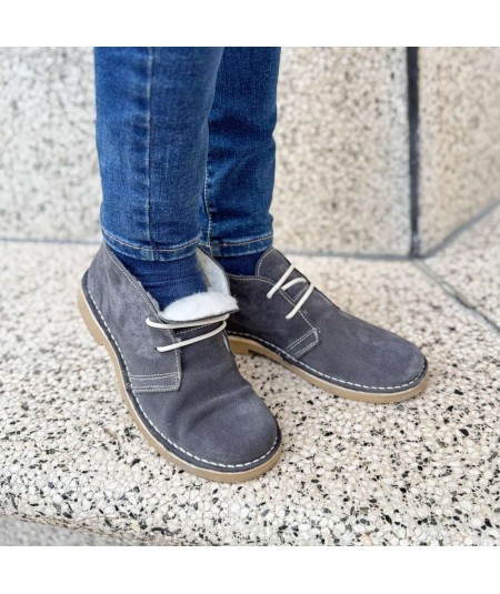 Graue Damen-Desert-Boots mit Lammfellfutter.