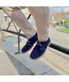 Marineblaue Wildlederstiefel in Premium-Qualität. Hergestellt mit einer höheren Sohle, besonders für diejenigen, die keine niedrigen Sohlen wollen. Mit diesen "Caminito del Rey"-Stiefeln gehen Sie überall bequem und mit einem angenehmen Wohlbefinden dank ihres guten Halts an Ihrer Pflanze. Dies sind die besten, wenn Sie Schuhe brauchen, ohne erklären zu müssen, womit Sie sie kombinieren und was Sie tun werden, während Sie sie tragen. Diese Wüstenstiefel für Männer werden ohne Frage zu Ihnen passen.