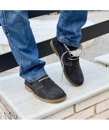 Grey desert boots lined with sheepskin for men