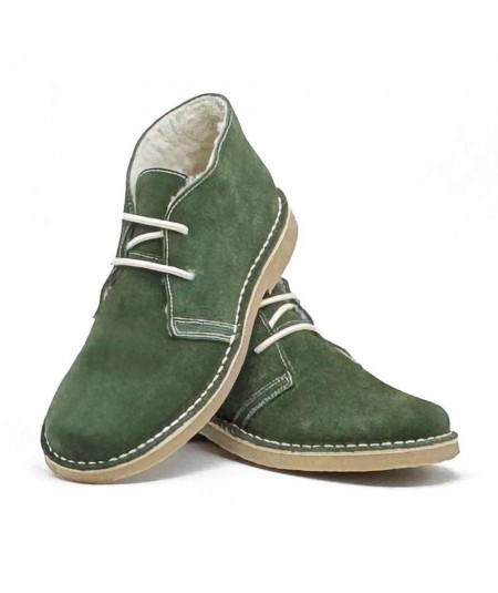 Descubre la comodidad de nuestras botas safari en color verde oscuro, diseñadas exclusivamente para mujer. Confeccionadas con materiales de alta calidad, estas botas cmbinan un exterior resistente con un interior de borreguito, que proporciona un confort y calidez inigualables en los días fríos.