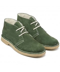 Bottes du désert vert foncé pour homme avec doublure en peau de mouton retournée