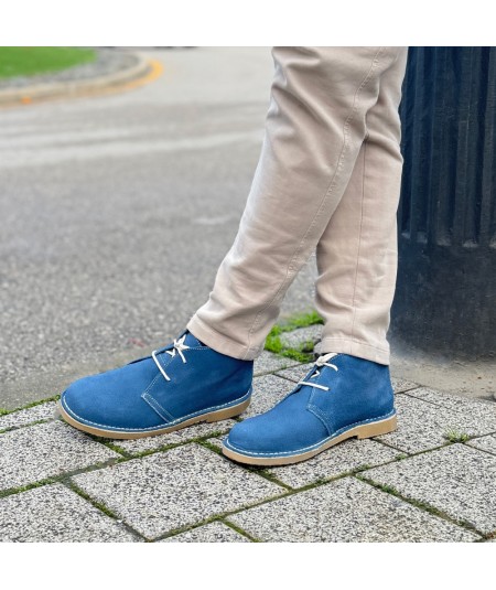 Botas safari azul jeans para homem. Um tom de azul ideal para combinar com tudo o que veste. Acorda-se de manhã e, independentemente da roupa que se está a usar nesse dia, calça-se as botas Jeans e começa-se o dia com uma experiência de bem-estar mais fácil, mais feliz e mais positiva. Ao encomendar estas botas, está a encomendar parte do seu estilo de vida, algo que projecta a sua personalidade sem falsos interesses.